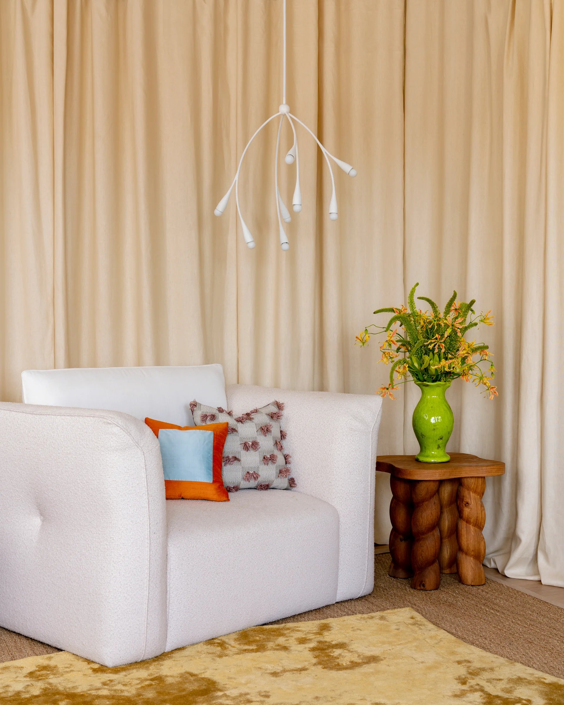 Bursting with style, Elsie draws inspiration from cherry blossom trees. Slender arms branch out from small spheres, ending in buds of petite matte white globes.