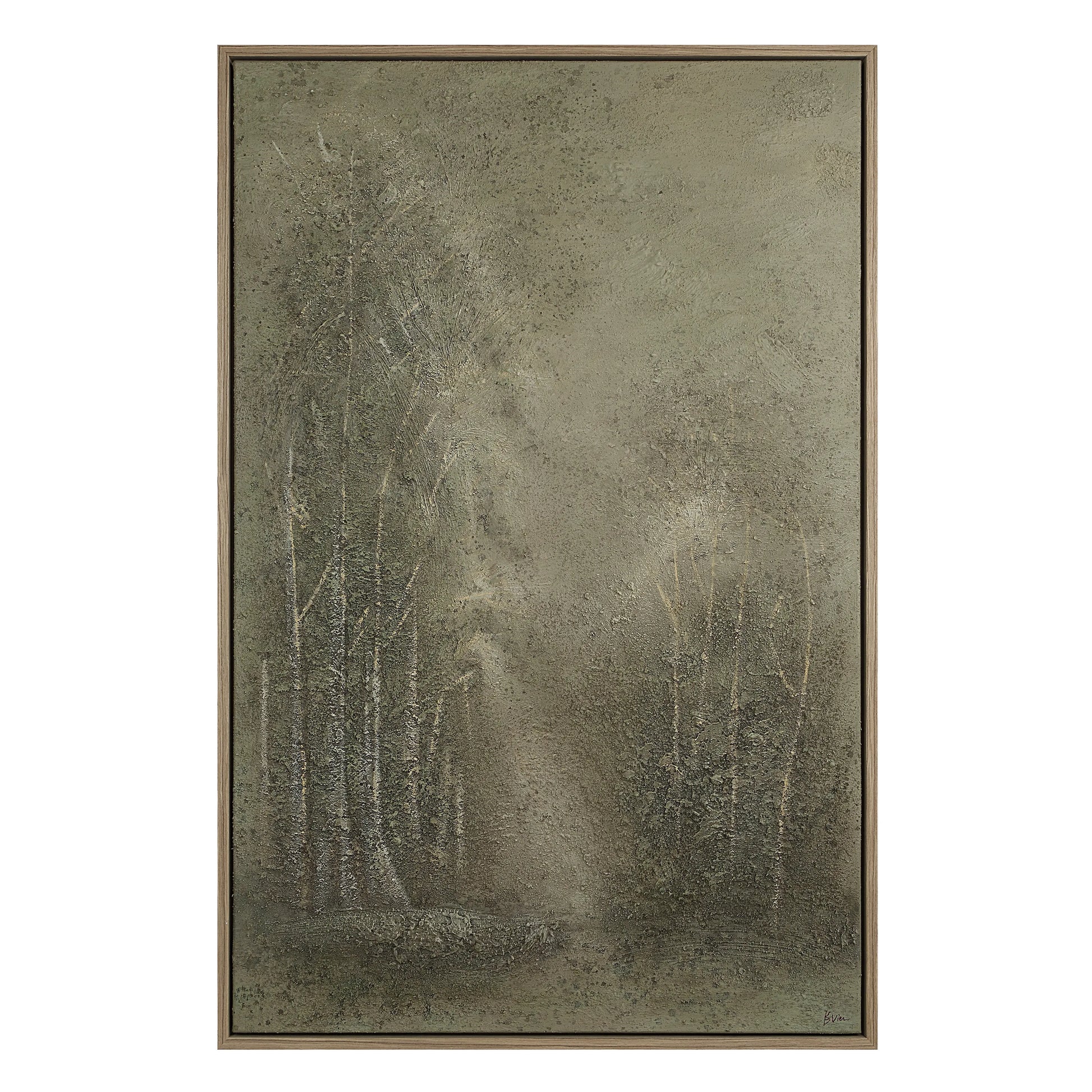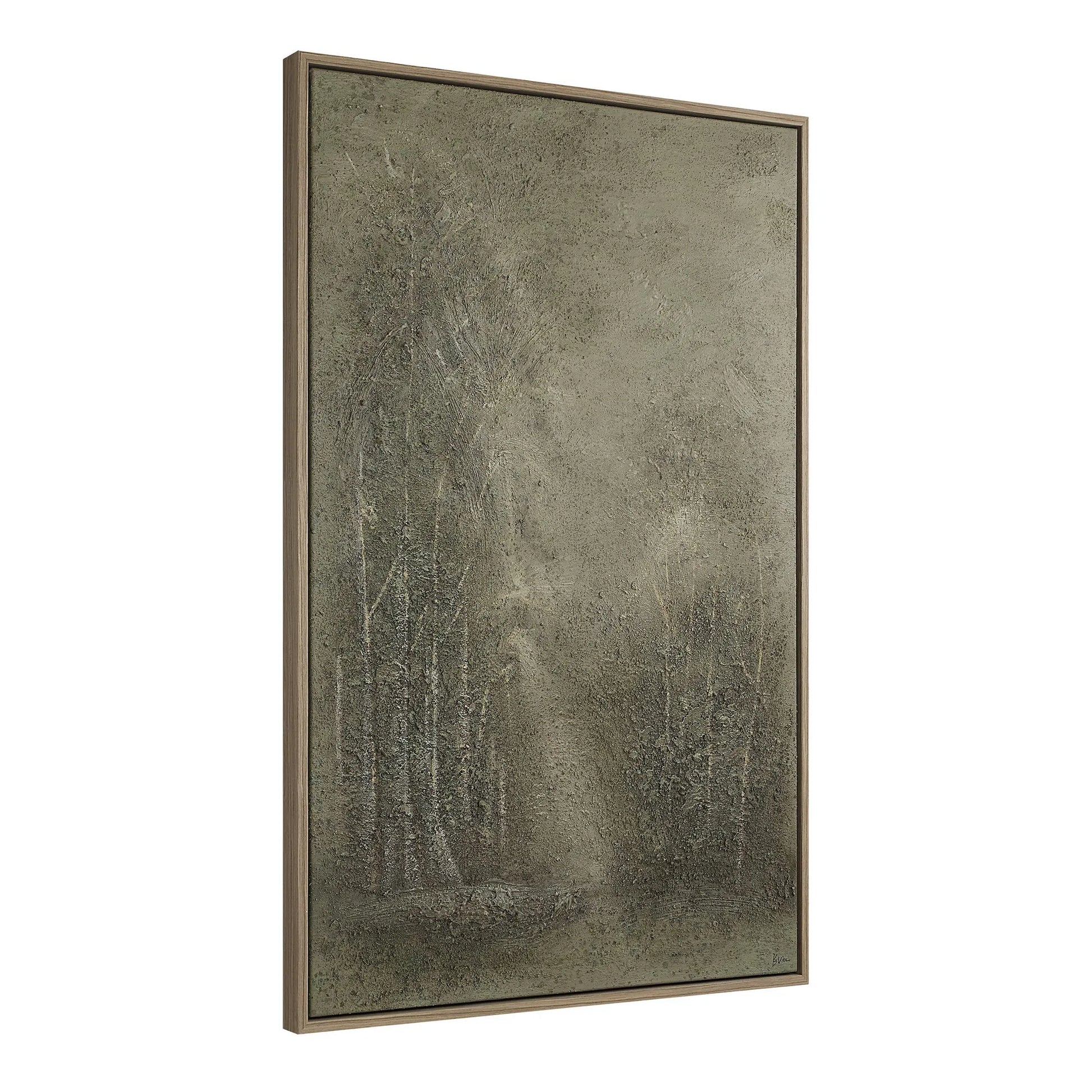 Embrace a casual vibe in any transitional interior with this timeless landscape art. Crafted with hand-painted heavy texture and neutral tones, this walnut veneer-framed canvas art boasts generous proportions, making it ideal for displaying in large spaces.