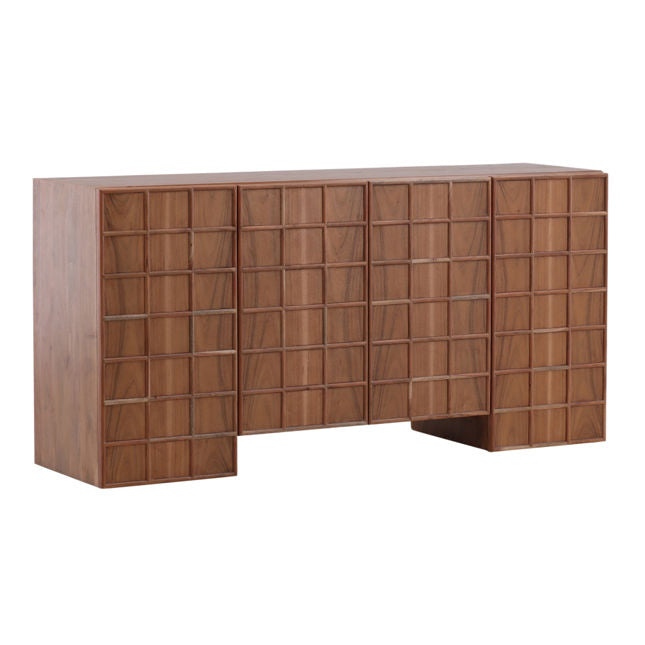 Hazel is the perfect blend of style and functionality. Made of rich dark acacia wood, this sideboard features a unique raised grid pattern across its doors, adding a touch of modern elegance to any room. With adjustable interior shelves, it offers ample storage and versatility.