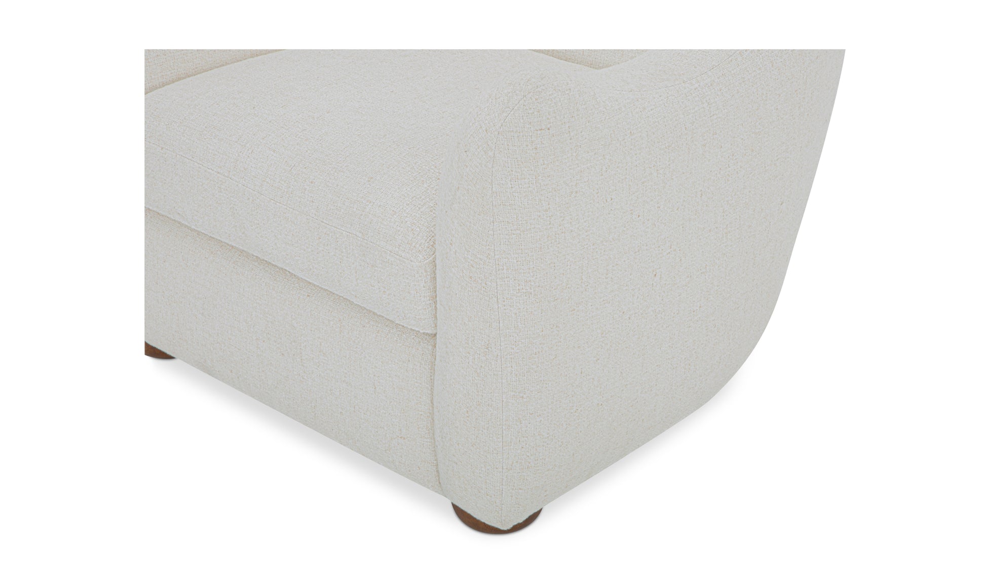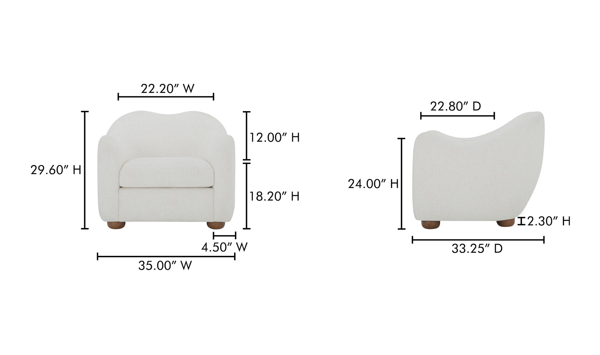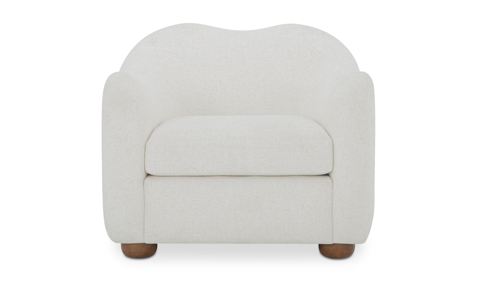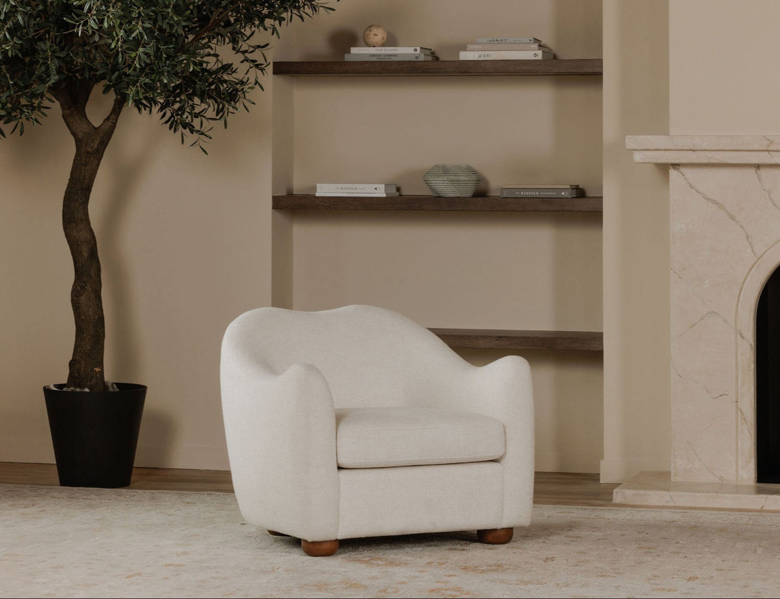 The Iris accent chair's gently sloping arms and rubberwood feet, finished in rich, warm brown inspire a vintage charm, reimagined for contemporary living. Crafted with a removable high-density foam seat cushion and upholstered textured, flecked fabric, it offers supreme comfort. Ideal as a singular focal point or pair, it offers timeless grace and understated sophistication.