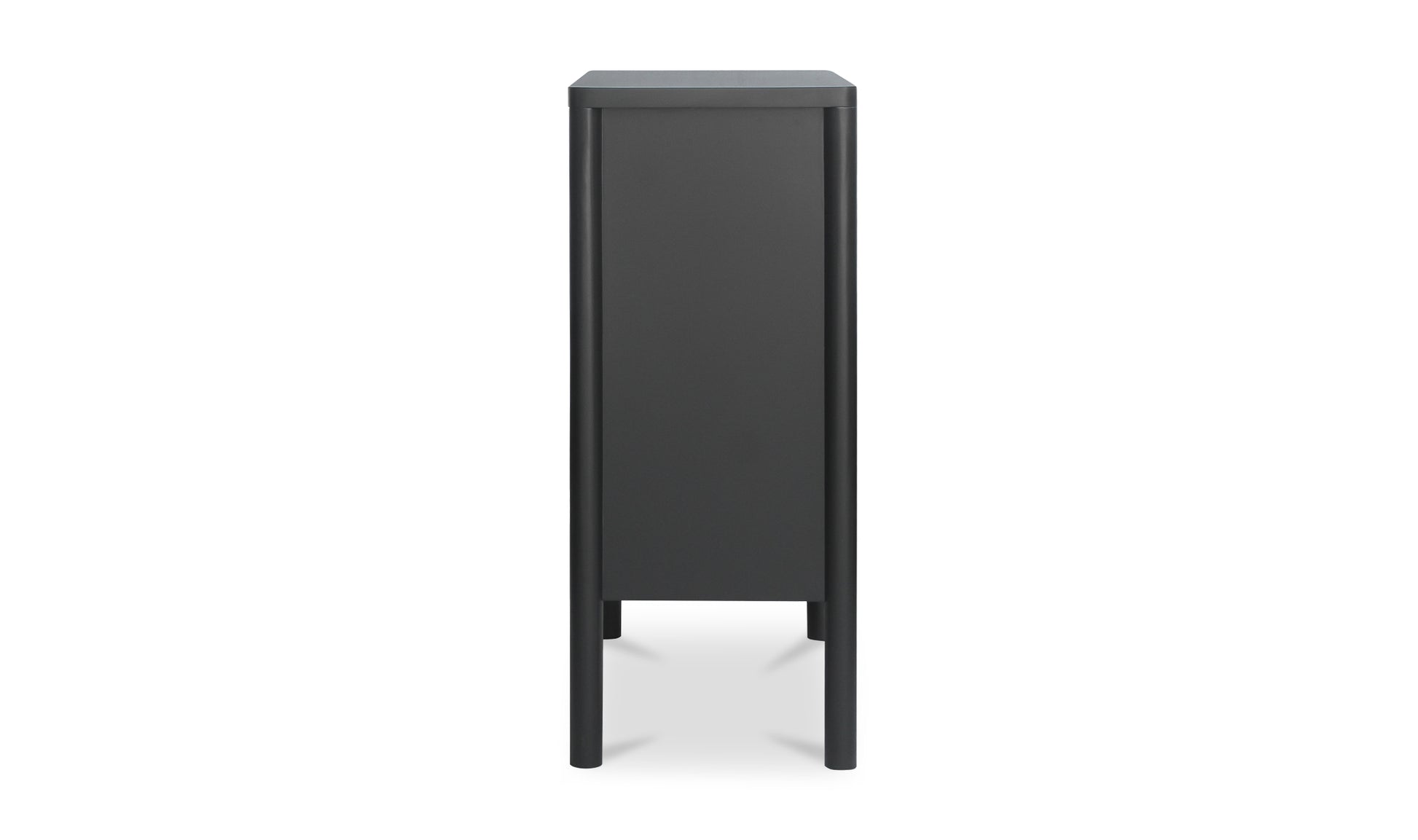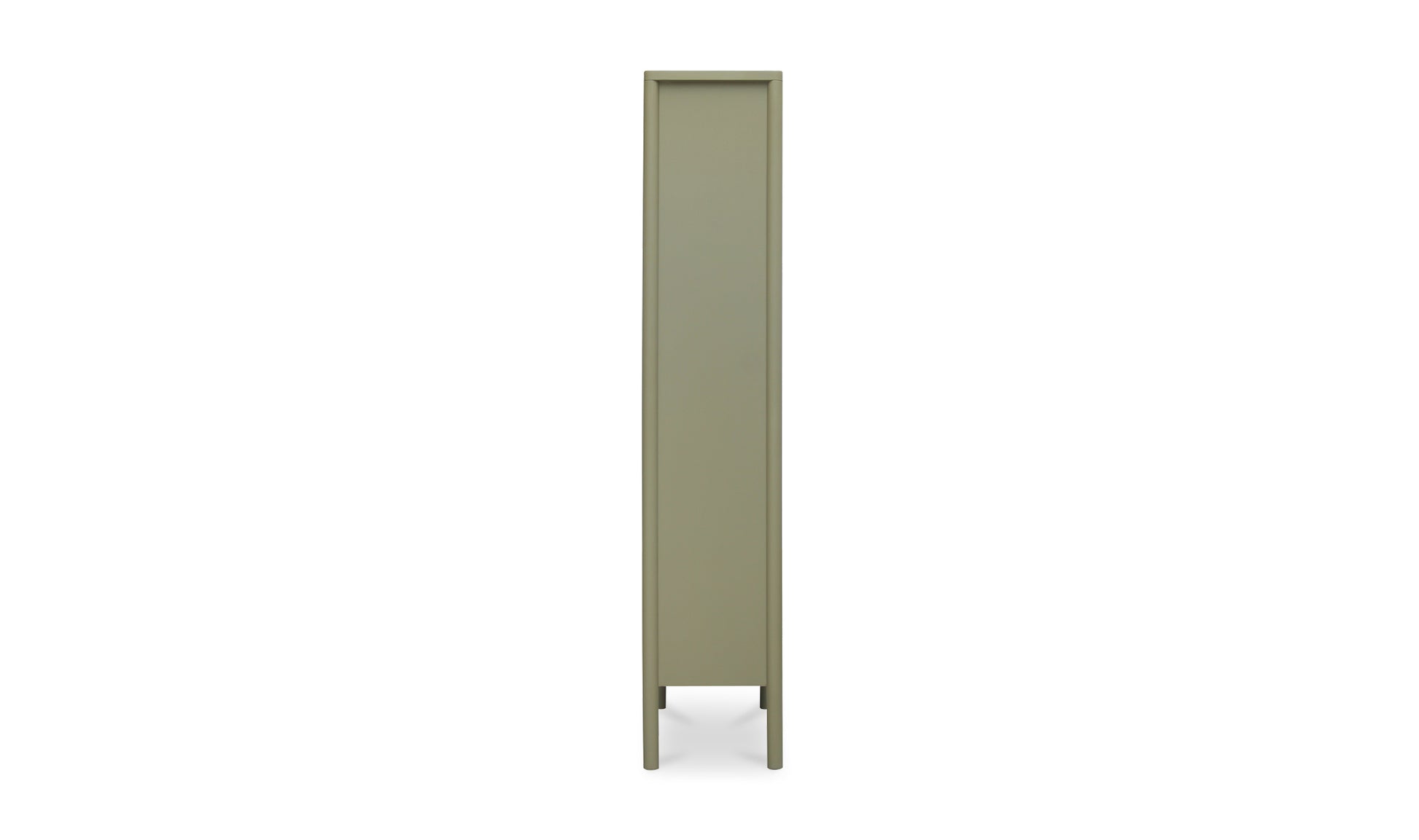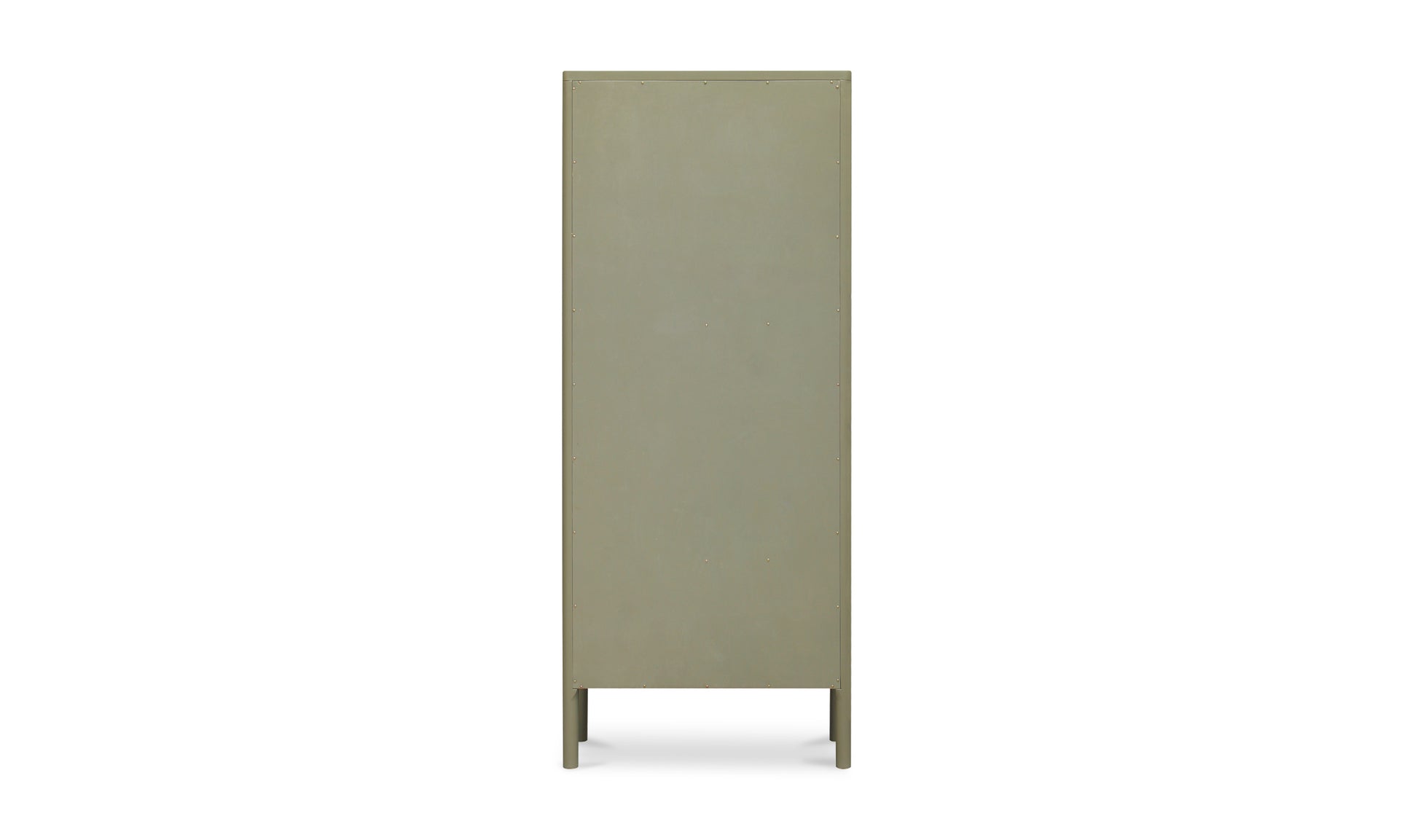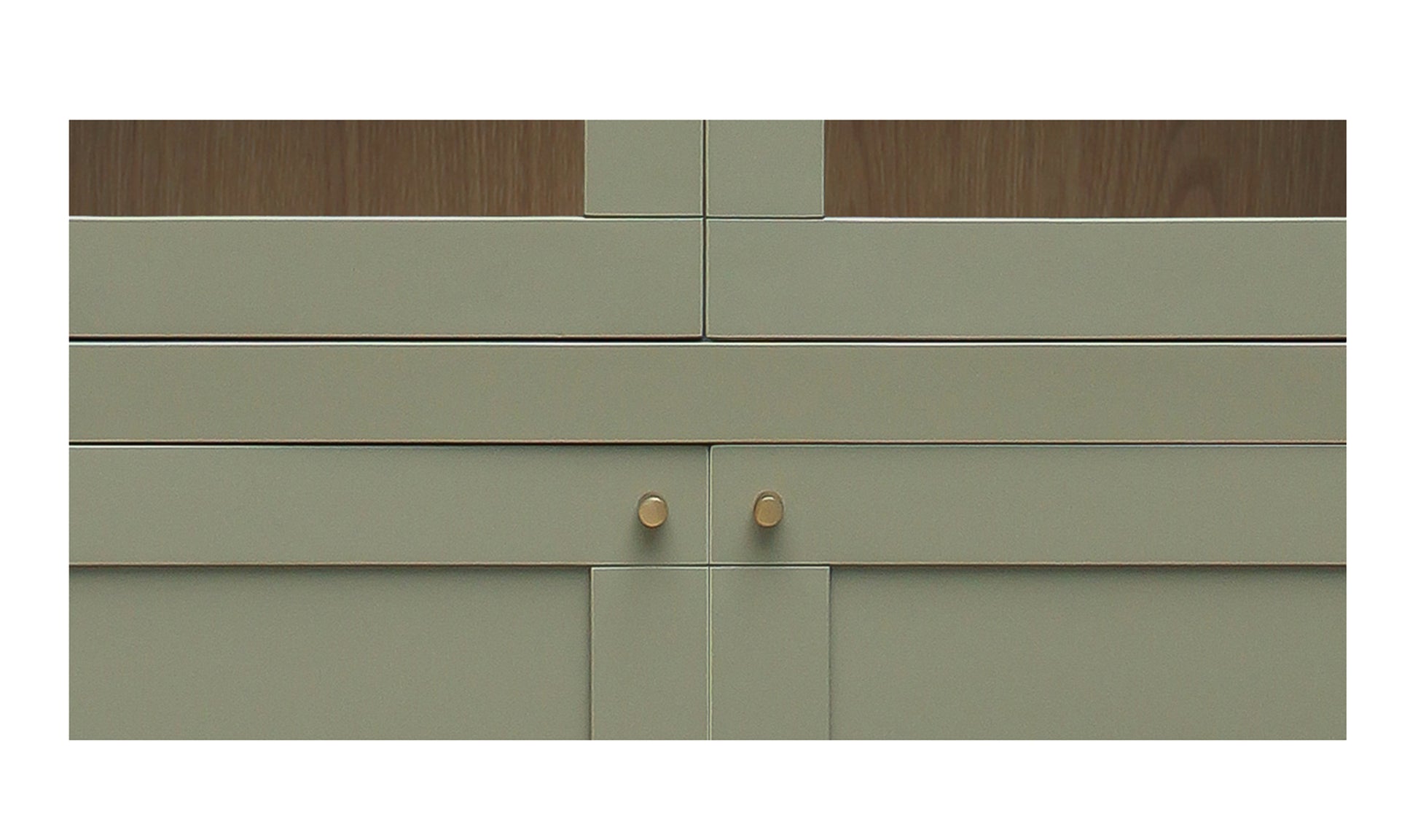 Inspired by classic millwork, the Ivy cabinet's timeless proportions with tempered glass inserts offer a glimpse of treasured items, while a solid pine frame ensures enduring appeal as dowel legs and bronze hardware infuse subtle softness.