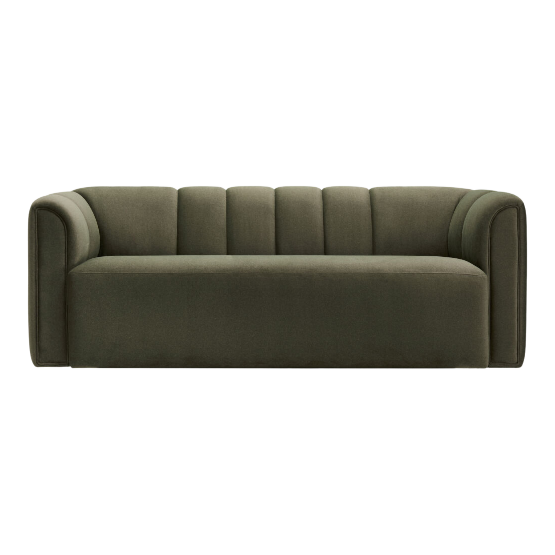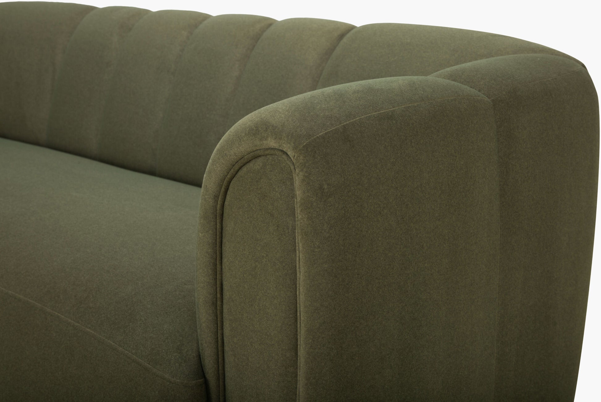 Form and function come together in an alluring design on the Lucy sofa. Channel tufting details on the back and uniquely shaped arms make this a special piece. Top that off with a warm forest green mohair-like polyester that is incredibly soft. A firm yet comfortable, solid seat makes this piece easy to dress up.