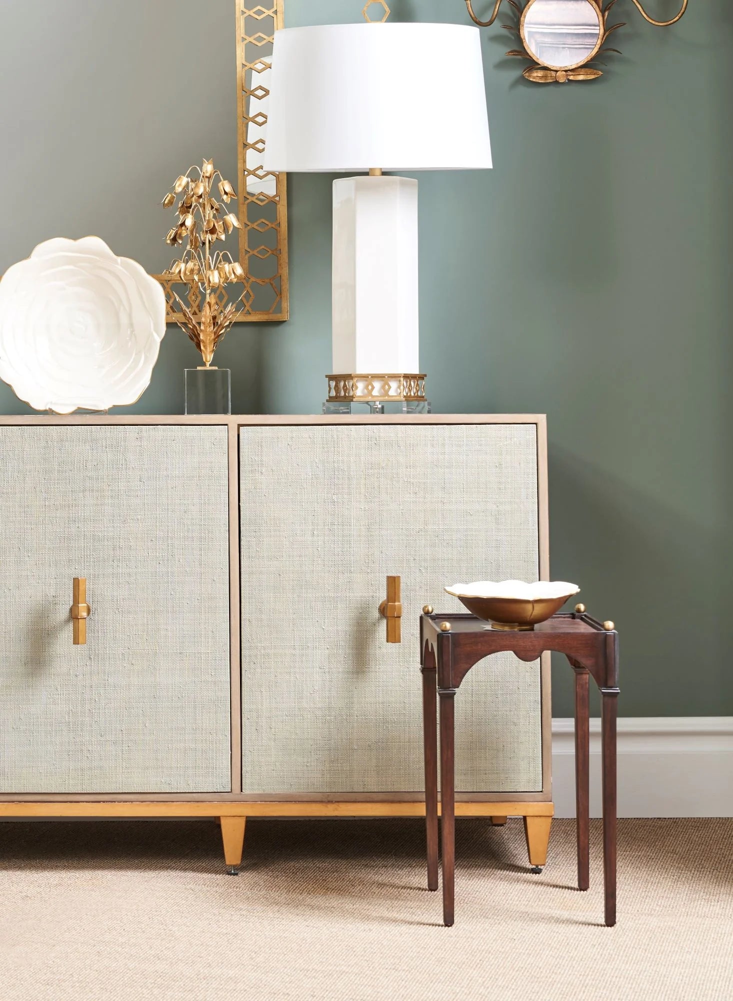The May Drinks Table is a fresh take on an 18th century Regency scatter table. With its cleaned up lines and brass ball details it's perfect with modern and traditional interiors. Available in mahogany, cerused oak, or painted white finishes.