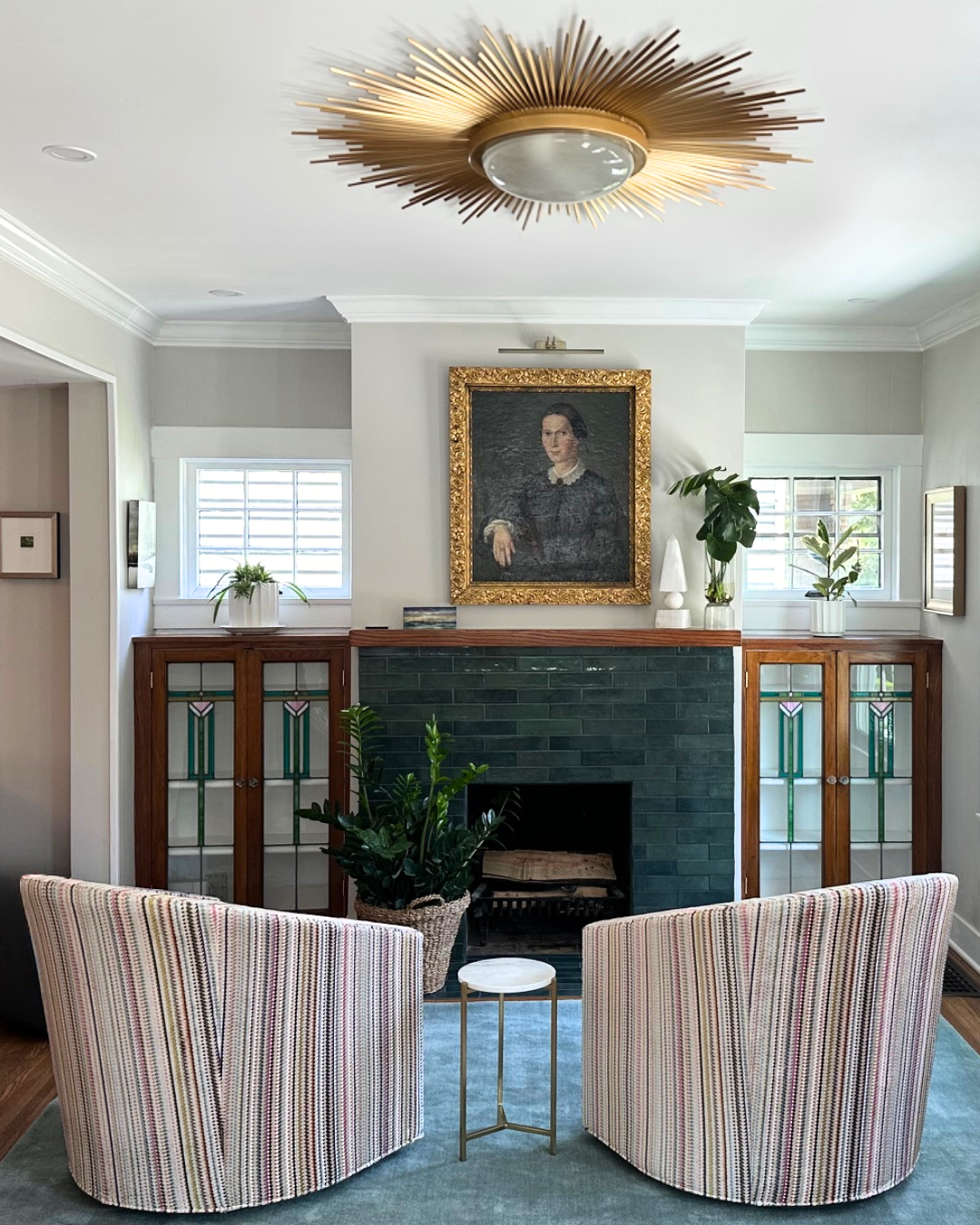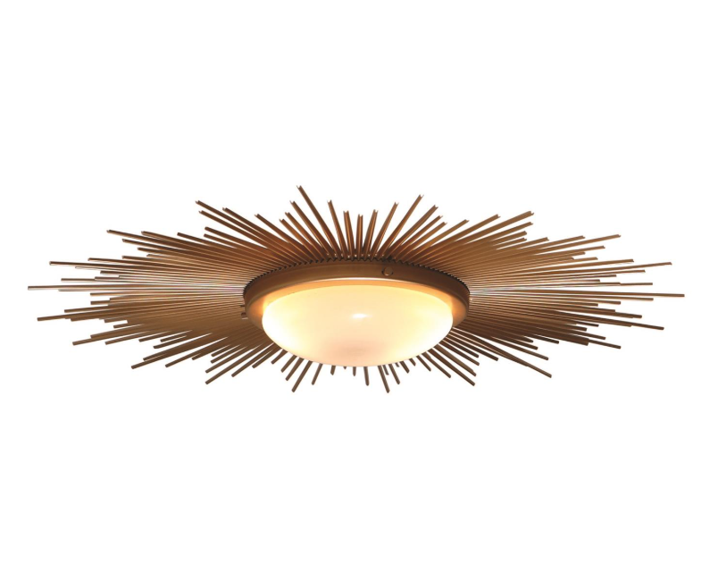 Bring a sunny burst of light to a room with our Sunias flush mount! The fixture features a frosted glass shade and holds two 40 watt bulbs.